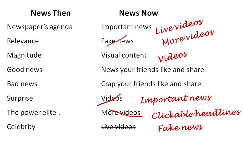 As you can see from the lists below, there’s quite a difference (OK the “News Now” list is meant to be light-hearted and not 100% accurate – but you get the idea). Another challenge is that the algorithms are constantly changing, hence all the strikethroughs.
